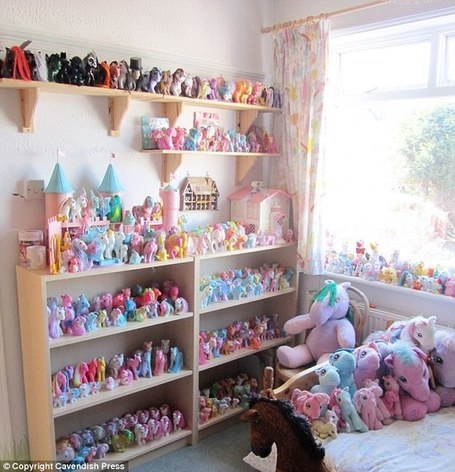Αλλά για την 29 χρονη Sarah Butler, η συλλογή των Πόνι είναι μια συνεχώς αυξανόμενη εμμονή καθώς έχει 1.000 πόνι αξίας $ 31.789 που ζουν στο "δωμάτιο πόνι", το οποίο είναι αφιερωμένο αποκλειστικά στη συλλογή της.
